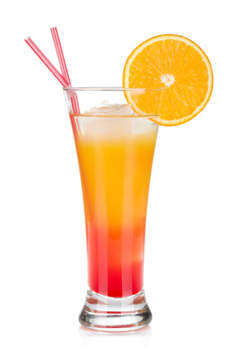 - Fill the rest of the glass with equal parts orange juice and pineapple juice.